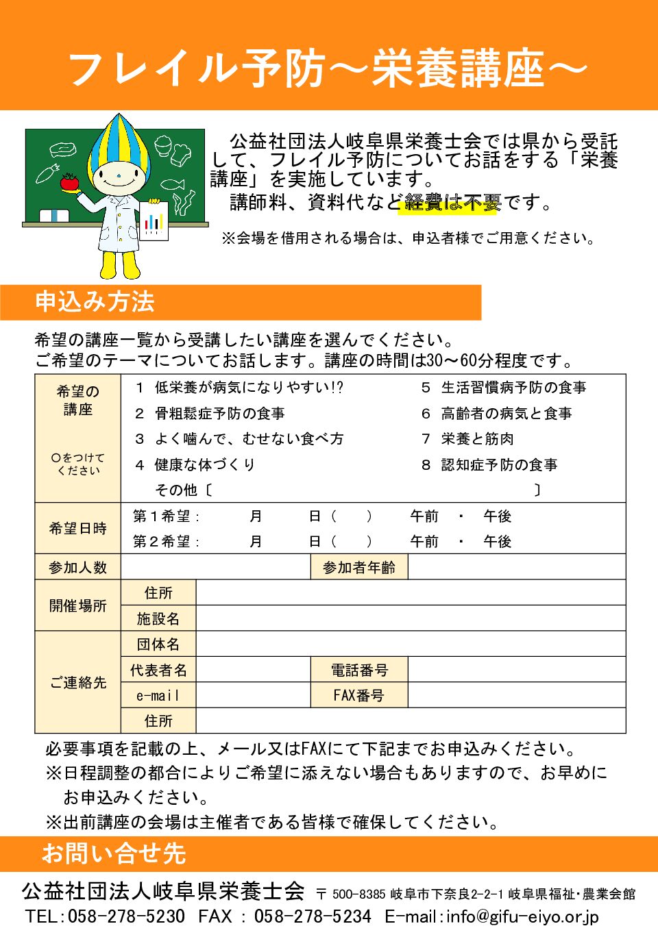 栄養士会は、栄養に関する知識の向上や食事での支援を行っています。各種情報をご案内しています。ぜひご活用ください。