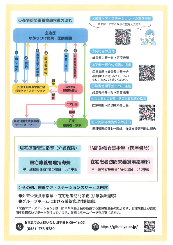 「栄養ケア・ステーション」は、公益社団法人岐阜県栄養士会が5圏域に設置している地域密着型の拠点です。管理栄養士・栄養士が地域や医療・福祉機関等に対して、食に関する幅広い支援をしています。