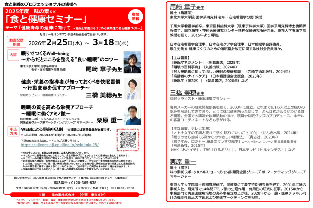 2025年度 味の素KK 「食と健康セミナー」のご案内